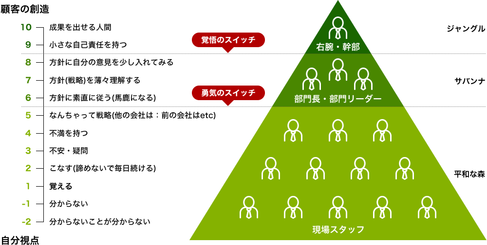 改革の工程を体系的に学び高めあう人の強みを生かした組織改革には順番があります。自分の強みを引き出しただけでは終わりません。社長を含めたそれぞれの従業員の強みを上手く生かしながら組織は成長していきます。お互いの強みと強みが助け合い、時にはぶつかり合って質を高めて動き出します。仲間と一緒に考えて、協力して会社の思いや方向性を具体的な計画に落とし込み行動して動きます。自分の強み、仲間の強み、そして会社の強みが融合してクルクル回りながら組織は風土を形成していきます。