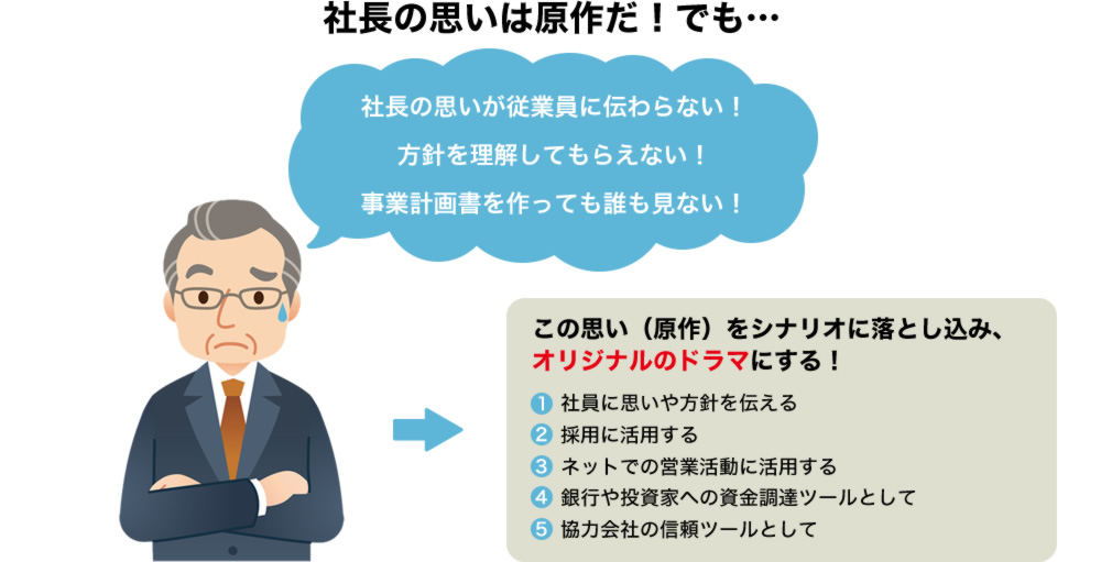社長の思いは会社の物語です。夢を描き会社の明るい未来を描くストーリー。その物語の原作者が社長です。